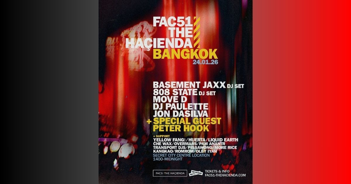 24 มกราคมนี้ คลับในตำนาน FAC51 The Haçienda จะกลับมาเยือนกรุงเทพฯ อีกครั้ง พร้อมเนรมิตเวนิวลับใจกลางเมืองความจุ 2,000 คนให้กลายเป็นจุดรวมตัวทางวัฒนธรรม